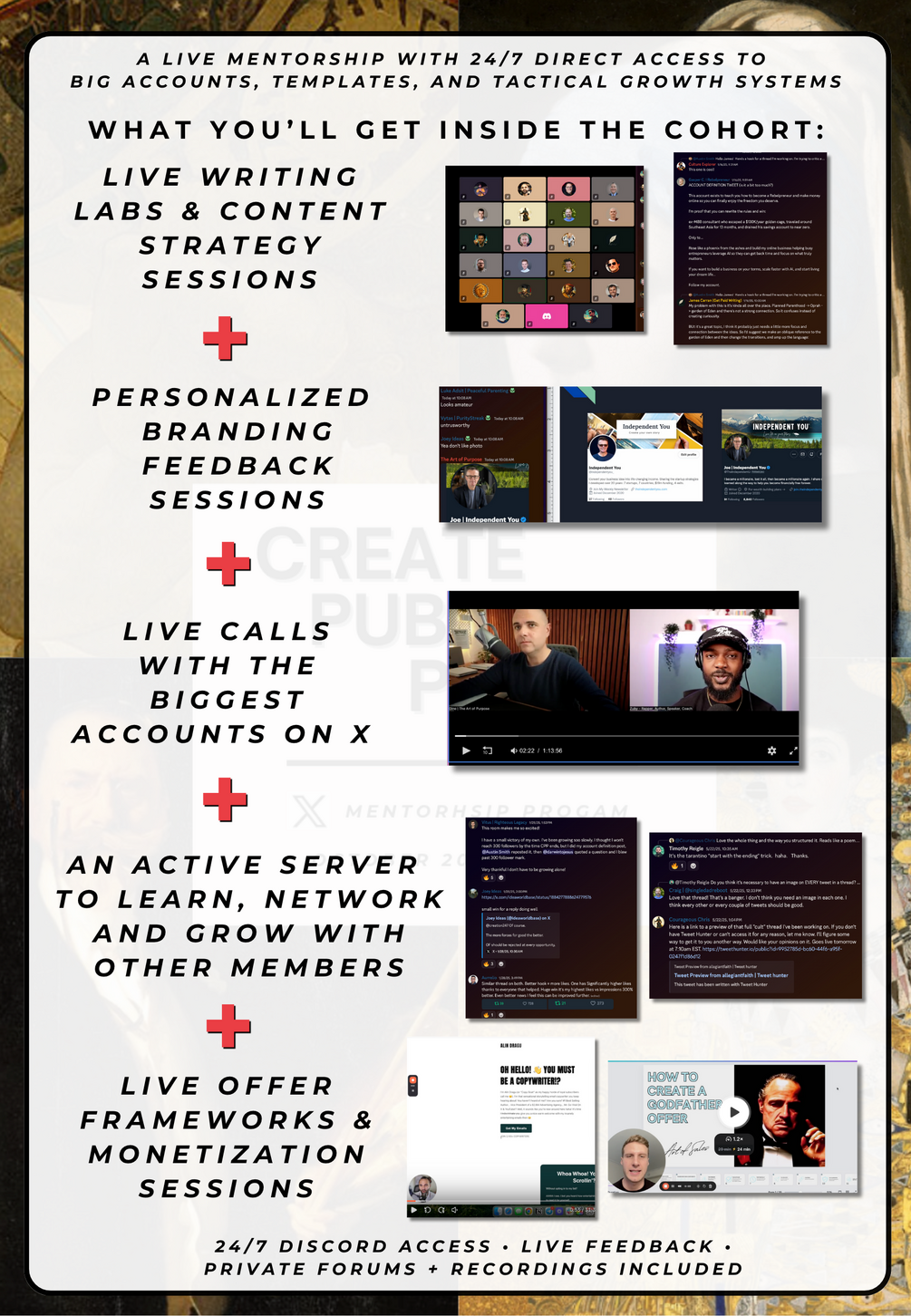 If you’re trying to build a serious presence on X and want to shorten your learning curve... this mentorship will walk you through the exact systems we’ve used to grow faster, build influence, and create online leverage.